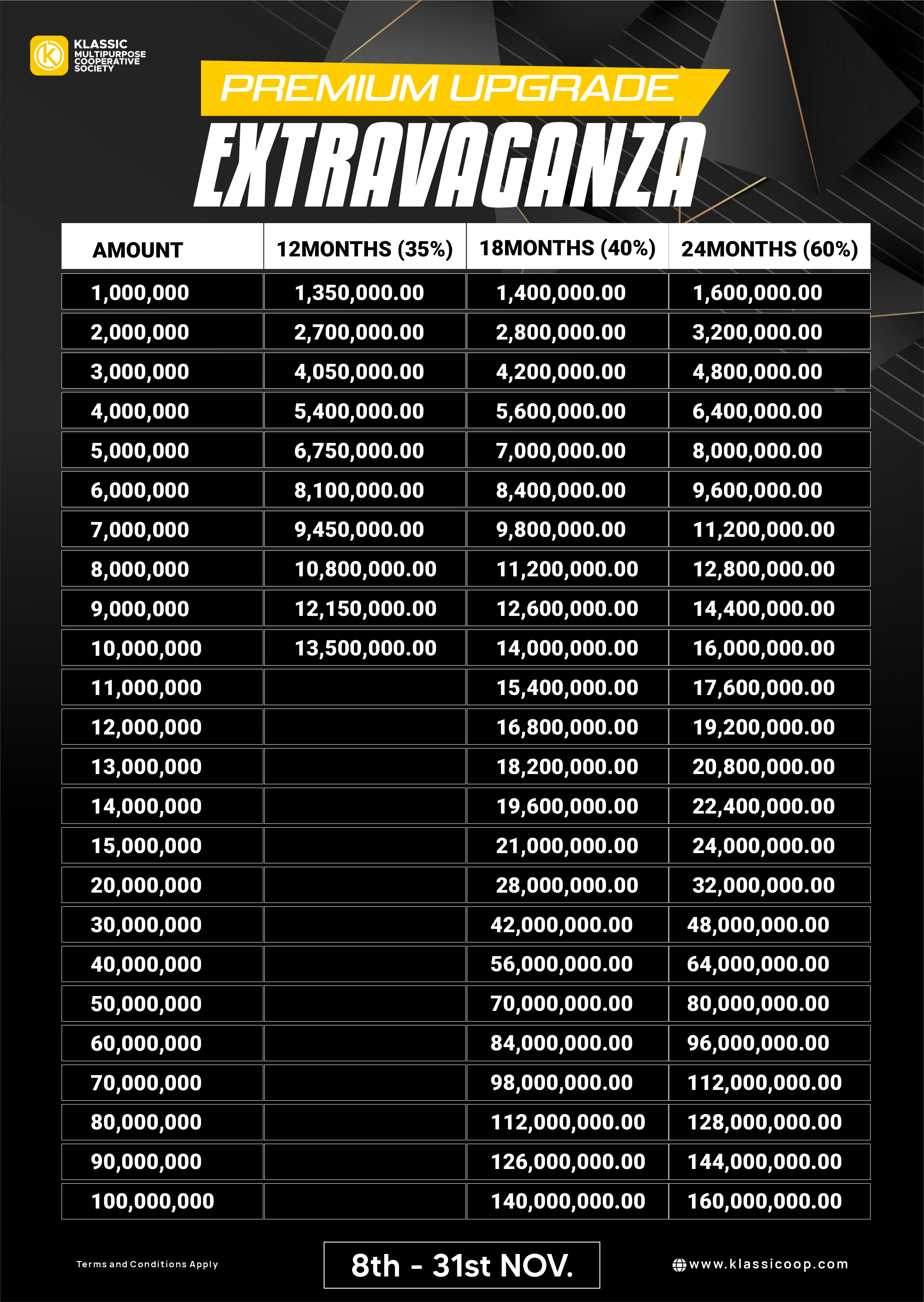 Get ready to be a part of something groundbreaking! Klassic Cooperative's Platinum Membership isn't just an investment opportunity; it's a commitment to solving Nigeria's housing deficit alongside Trusted Choice. Here's your chance to make a difference while enjoying incredible benefits.